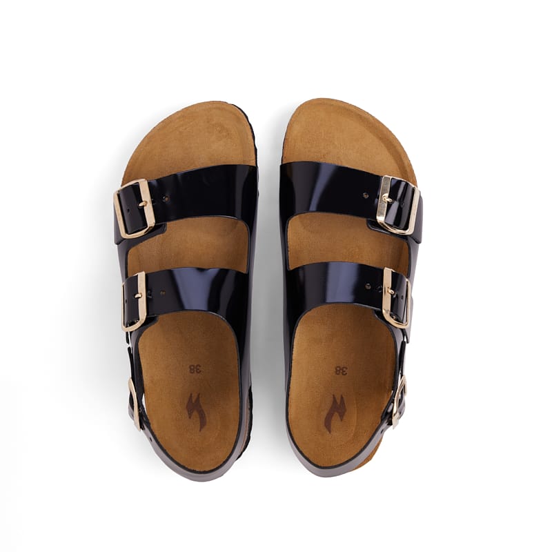SANDALIA is a leather sandal designed for secure everyday wear. Featuring double straps and a back strap, it offers stability and support for long days.